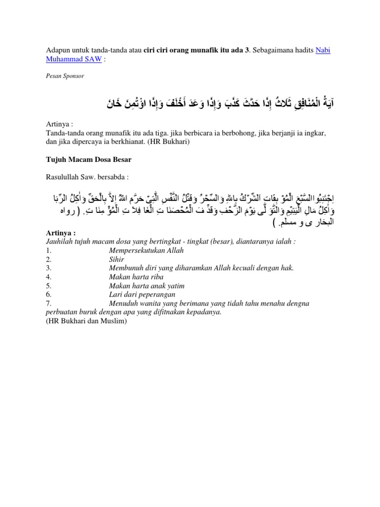 Nabi Muhammad Saw Tujuh Macam Dosa Besar
