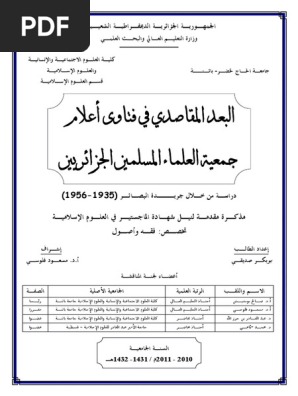 االبعد االمقاصدي في فتاوى أعلام جمعية العلماء المسلمين الجزائريين دراسة من خلال االبصائر 1935 1 Pdf