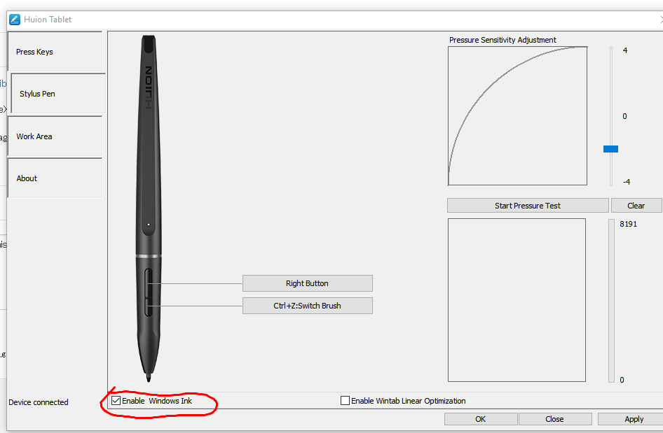 Pen Pressure Not Working Huion Gt 191 Clip Studio Ask
